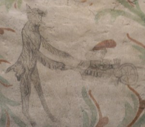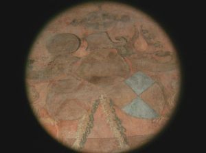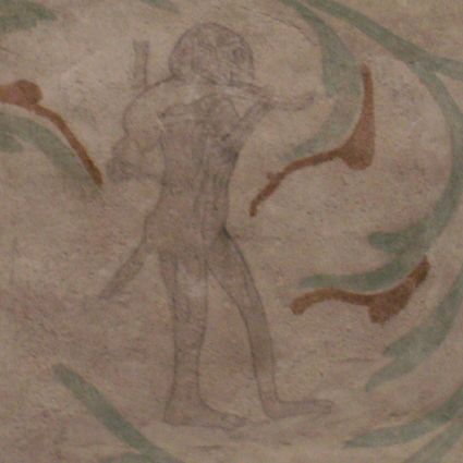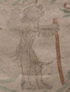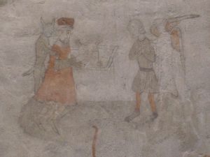 One of the devils – the picture of which was probably very much destroyed – was painted as a stretcher-carrier. Even a characteristic cap was painted on his head….
