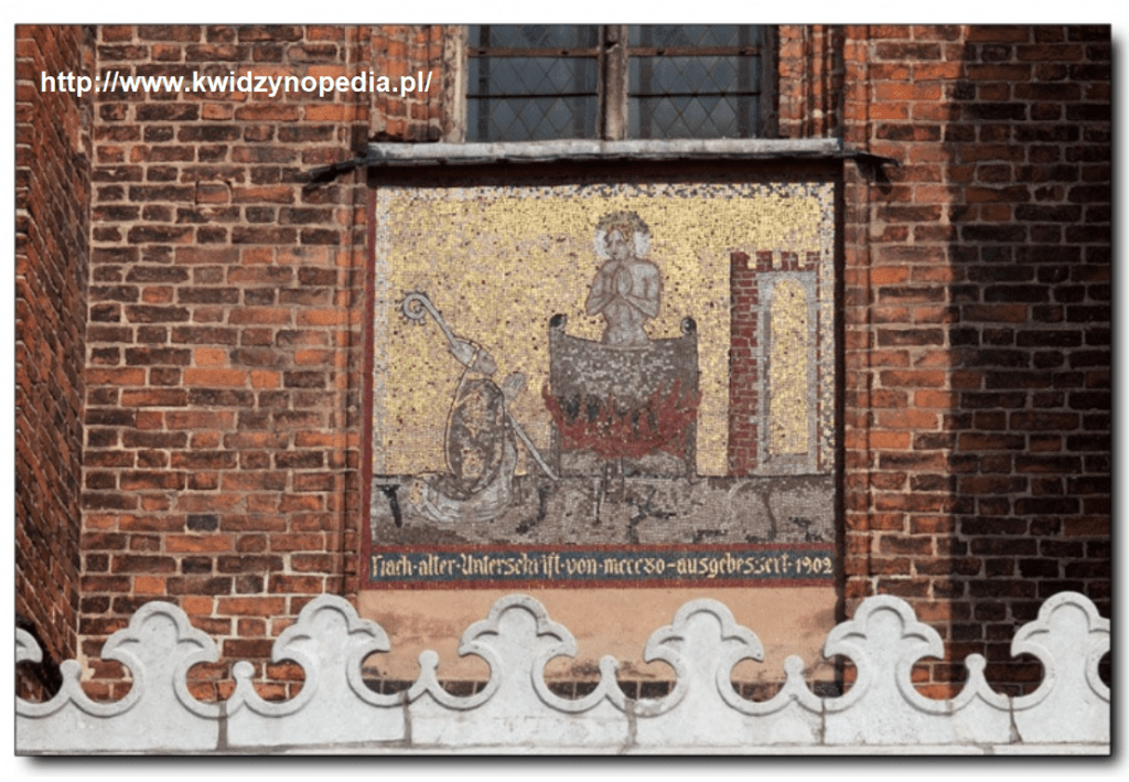 There were 3 such mosaics in the medieval Europe – north of Alps. St. Vitus, the reconstructed after WWII – 8 meters high figure of Madonna in Marienburg (Malbork), and Merienwerder (Kwidzyn) St. John, on the south wall of the cathedral. St. John is original. Luckily survived all the atrocities of the passing centuries (including the Napoleonic times).